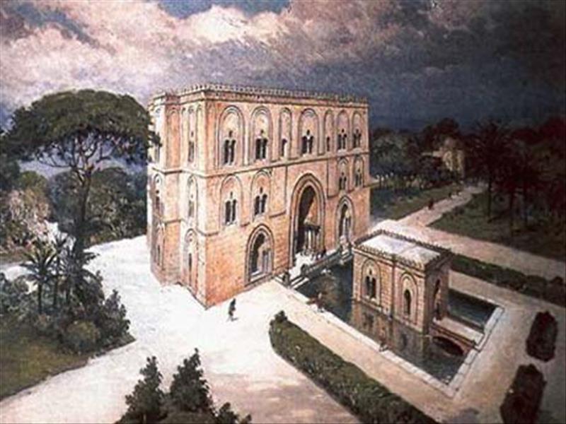 la zisa - ricostruzione fantastica, olio di Rocco Lentini - anno 1935
